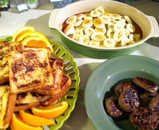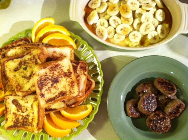 Williams and Sonoma cookbook French Toast with nutmeg, vanilla and orange zest {courtesy of my new zester! yes!!} Josh took the lead on this part of the meal and he did fantastic! So flavorful and decadent!