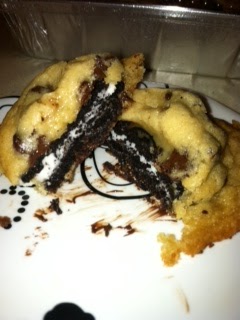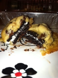 The other day on Pinterest I stumbled upon an idea to bake chocolate chip cookies with an oreo on the inside. Freshly home from a trip to Kroger {with a premeditated list inclusive of oreos and cookie dough} and found with a little bit of dead time on my hands, I whipped them up!
