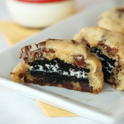 Bad Amanda. I showed you pictures of the super yummy oreo stuffed {or is it chocolate chip cookie stuffed?} cookies earlier this week. But I failed to tell you how to create these little devils…. whoopsies!