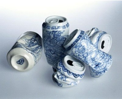 how funny are these porcelain cans! i finally got a vase in a pattern like this- yay!
