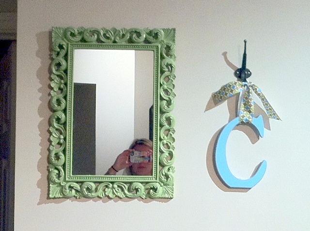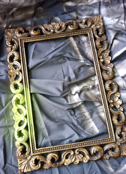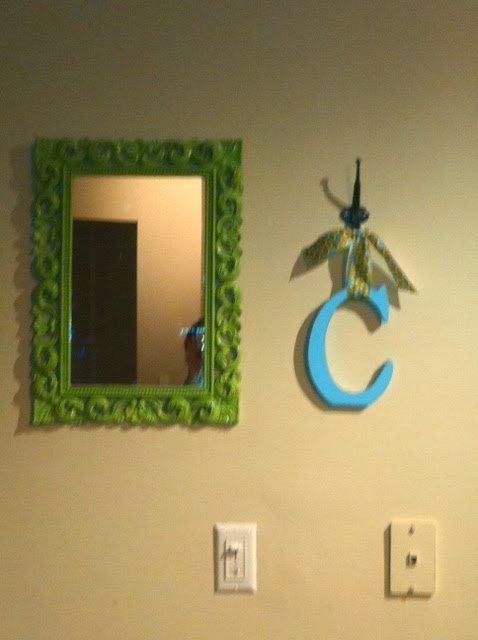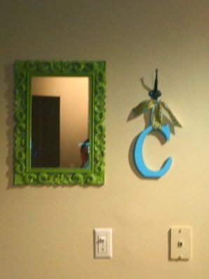 score! i found this mirror at Goodwill and spray painted it apple/grass green to match the kitchen area! crazy easy