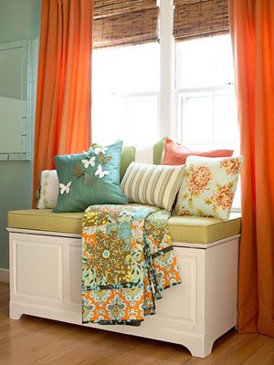 So DIY-able! Just give me a window! Of course, I die for those orange curtains the the throw