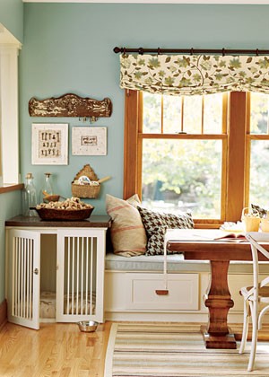 What I really love is built-in breakfast benches. My absolute favorite is when they are tucked in corners and surround a round table. This space is great.