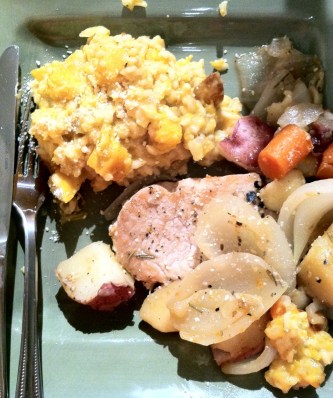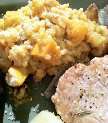 Roasted Pumpkin Risotto & Rosemary Skillet Pork Chops with Veggies