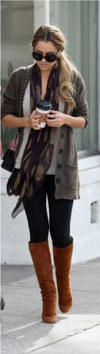 The ultimate fall outfit: long cardi, brown boots, leggings, tshirt and scarf. We have all been there before, and we will all continue to rock this as often as possible. {no back to back days please}