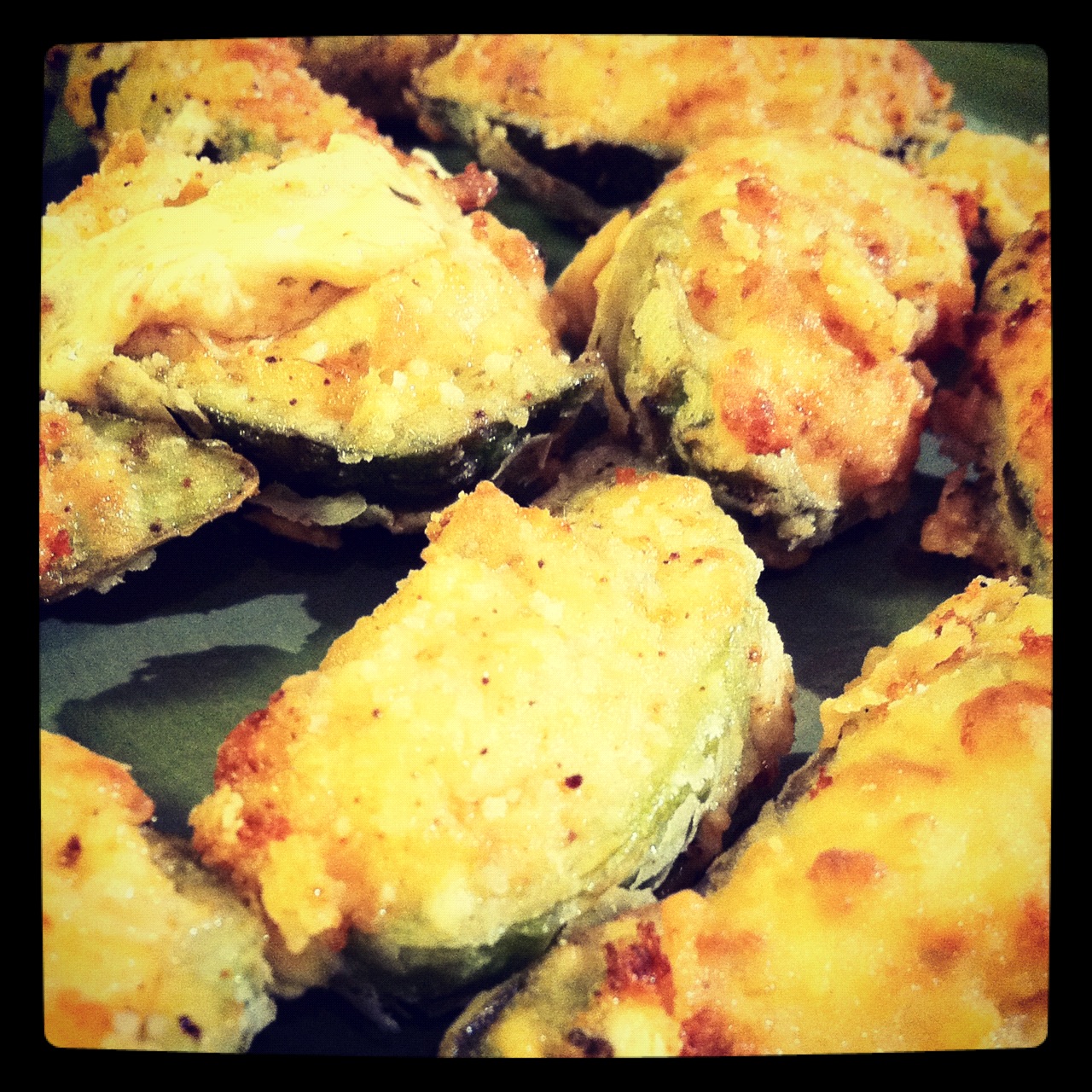 Pepper Poppers! Josh’s dad gave us some peppers to experiment with and I think I did them proud! They are stuffed with a savory cheese blend and perfectly golden brown thanks to Josh!