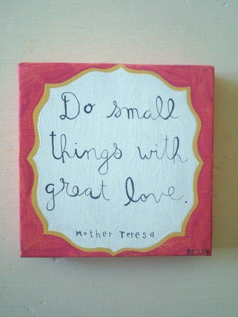 I am obsessed with everything about this. The colors, the shape, the font, the size and most importantly the words. Mother Teresa just could do no wrong- she is a daily inspiration and breath of fresh air.