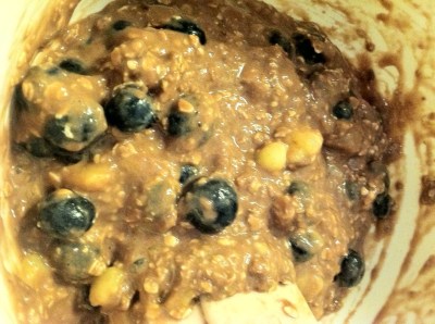 Yummy chunks of fresh bananas, oats and blueberries