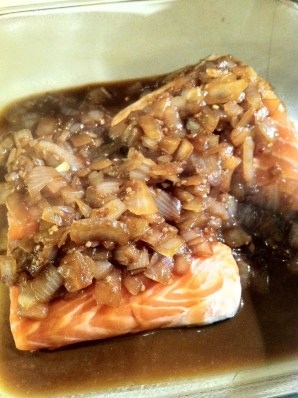I made a sweet & savory {& slightly spicy} healthy glaze for my salmon.
