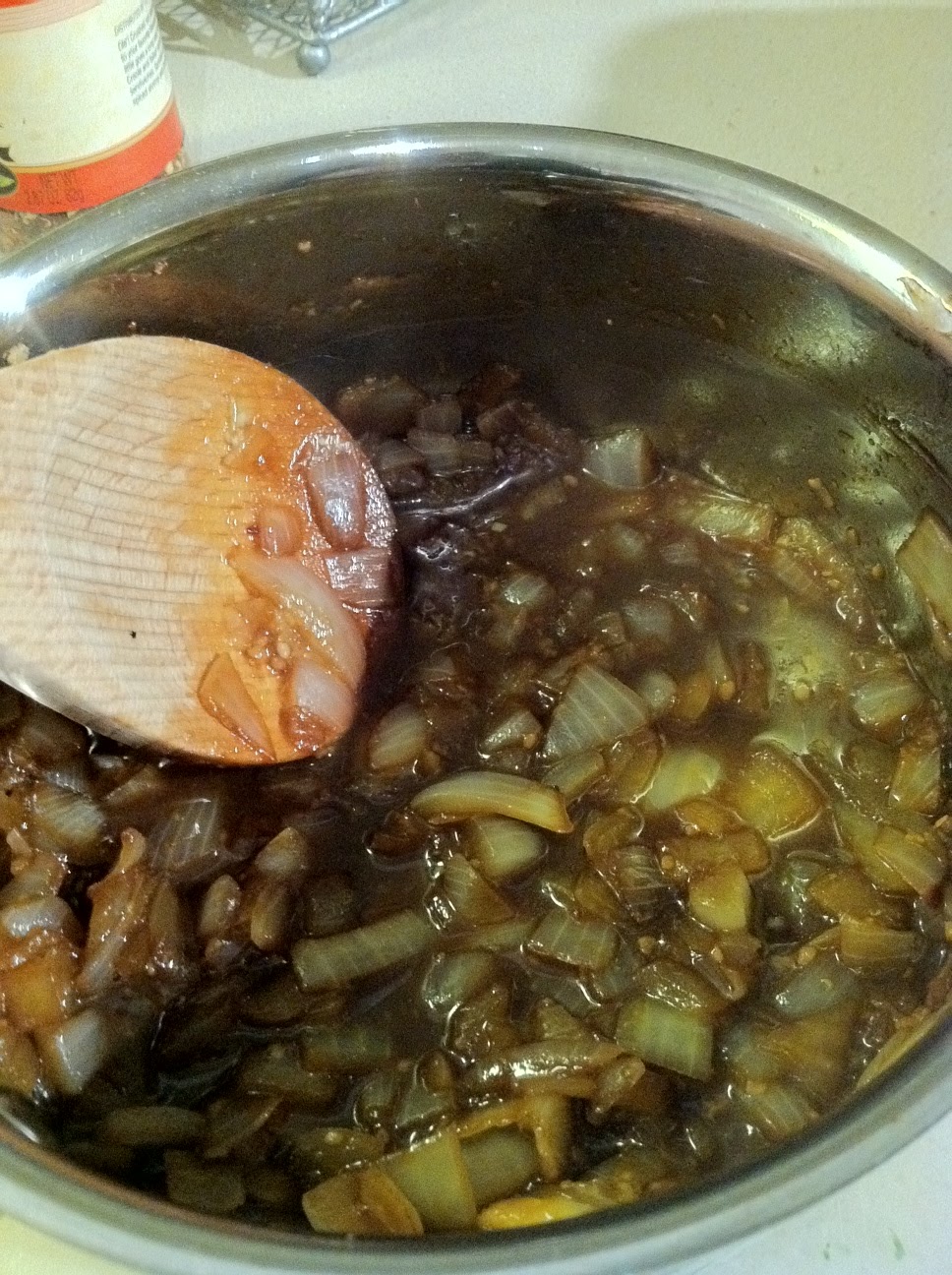 Ingredients: diced onion, minced garlic, red pepper flakes, light soy sauce, organic honey and a splash of organic orange juice