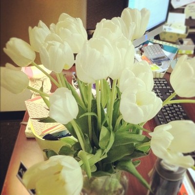 and today my tulips have fully bloomed and are a special addition to my desk at work.