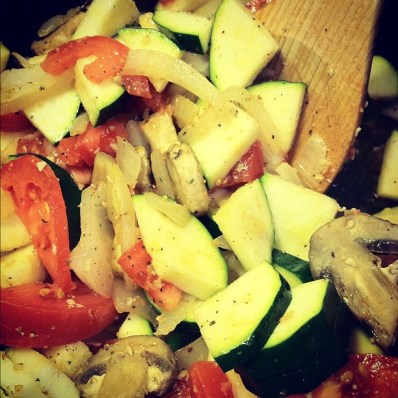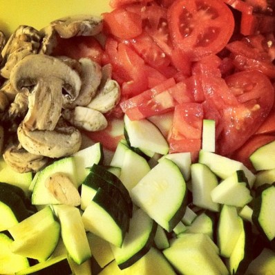 Chop up veggies- I used mushrooms, tomatoes and zucchini