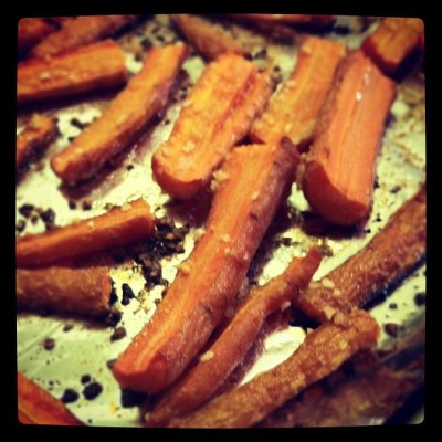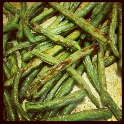 Roasted veggies {these are green beans} make a great afternoon snack. I prepare them at night by roasting at a high temp with EVOO and sea salt