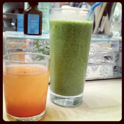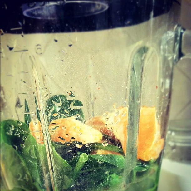- 1 leafy green {handful of baby spinach or leaves of 2 kale stalks}