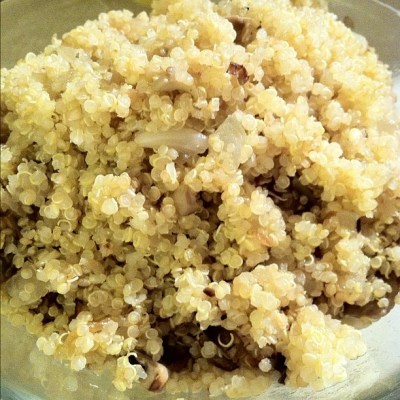 This was Mom & Dad’s first quinoa adventure, and they said they liked it! This time I cooked it in vegetable broth and added sauteed garlic, onion and mushrooms.