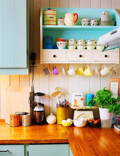 I love this shelf in the kitchen, I want to recreate so I can show off my cute collection of tea {coffee..} cups!