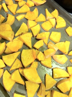 Josh also had to help out here…. sliced and roasted butternut squash! Could have eaten this plain. Always and forever, I love roasted anything.
