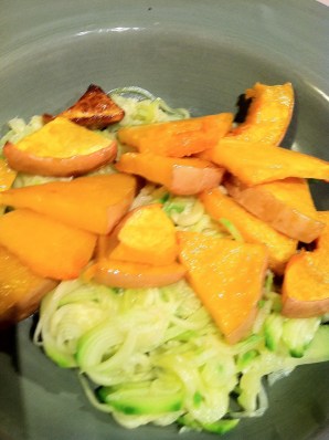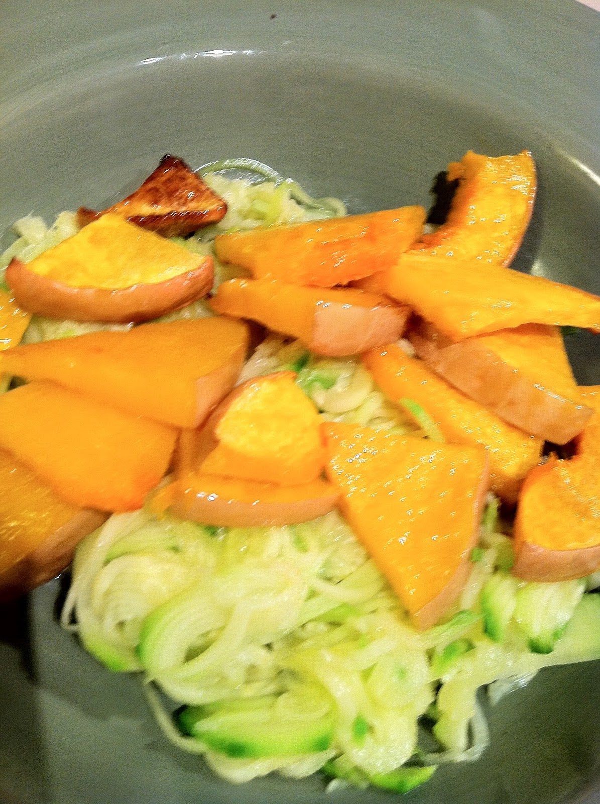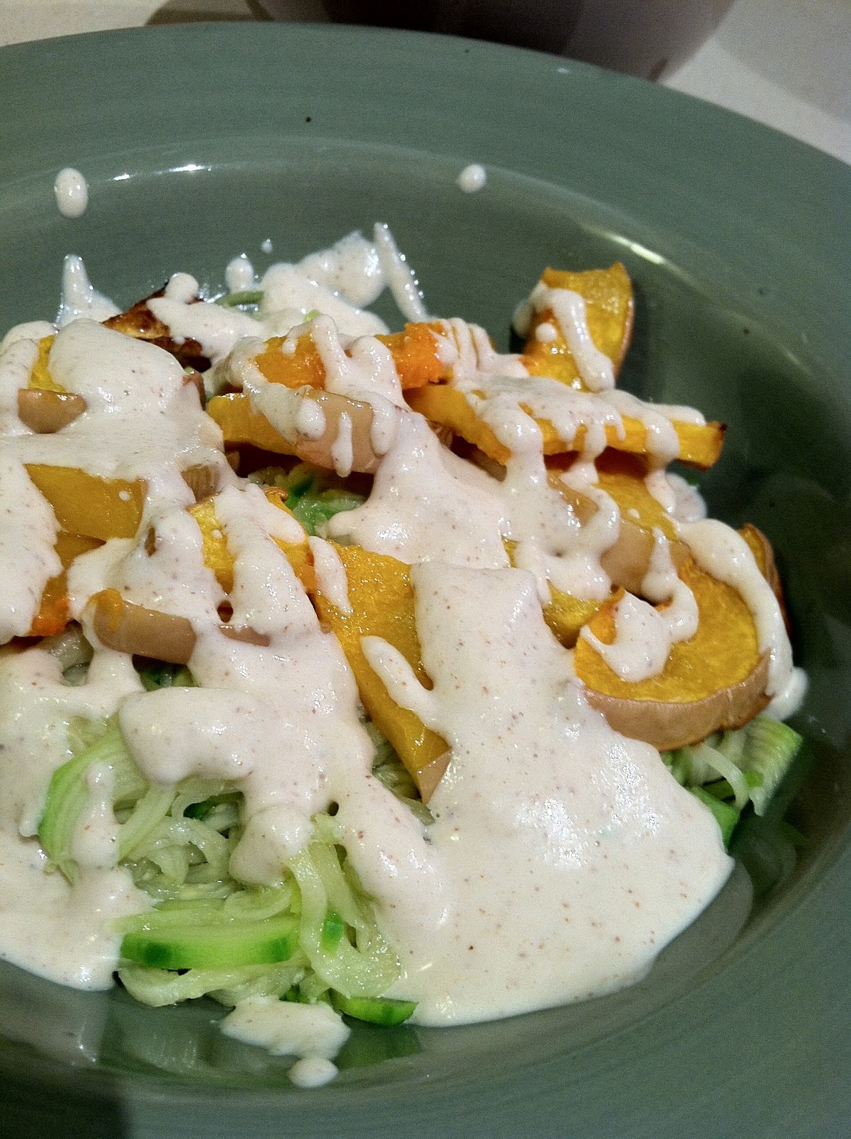 Zucchini Pasta with Roasted Butternut Squash and Creamy Garlic Sauce