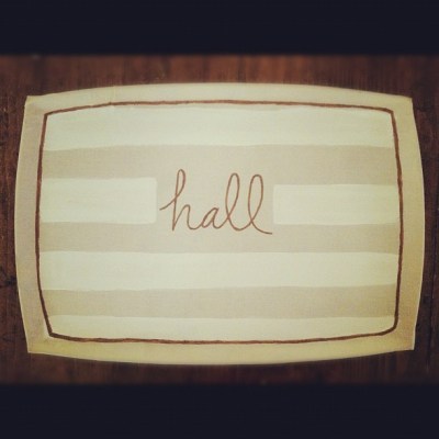 Using the same method as here, I covered the trays. To spice up the taupe linen, I pulled out my paint and got artsy. I just loooove this one, it turned out so well {especially given the fact that I was completely glued to Sunday night ABC tv shows}.