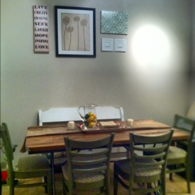 The dining room is now more than just a table and bench. It feels like a real live dining room!!! Who wants to come over for dinner? 🙂