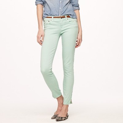 Unless you live under a rock, you’ve noticed that jeans don’t just come in faded blue and dark blue anymore. The whole dang rainbow has been converted into jeans. Last week I picked up a pair in this pretty seafoam color.