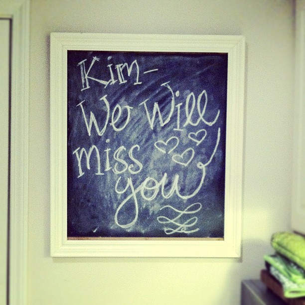 An old Goodwill frame got a facelift with some white spray paint and 2 coats of chalkboard paint.