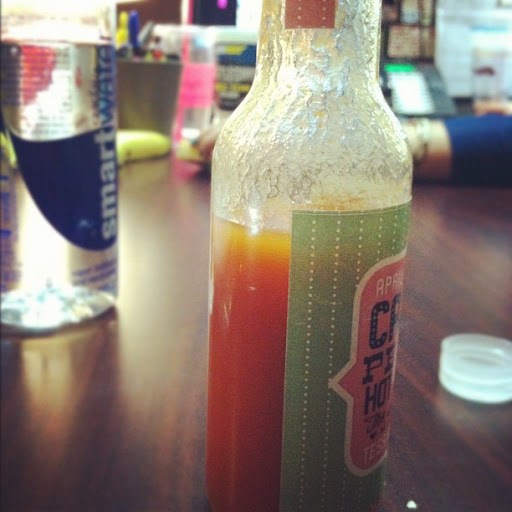 My lunches are always pre-packed {no room for risk!} and consist of a lot of organic burritos and steamed veggies loaded with tasty hot sauce! Hot sauce is my new favorite thing! I think the fiance is rubbing off