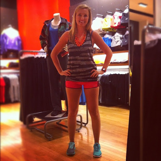 The real reason we went shopping was to update our sneaks collection. Josh needed to trade in his trail running shoes for something made for SPEED! Since I have been spending the majority of my time lifting weights and doing toning routines; I wanted a lightweight shoe for support.