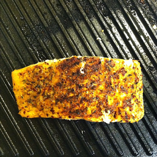 Citrus salmon has been on the JAMM family dinner menu 100+ times lately. Last week we used one of our shower gifts to grill the filet! I also topped it with the Tone It Up sweet and spicy salsa. Yumm