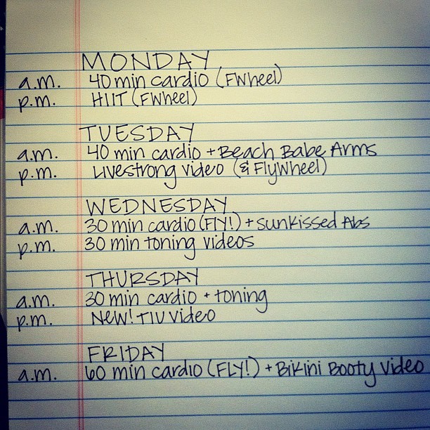 Last week the Tone It Up girls wrote out workouts for Monday through Friday, morning and evening. Who knew such an easy step would be so helpful?! Lucky for us, they did it again this week! Check it out here then modify to your schedule- write it in your planner or post it in your house!