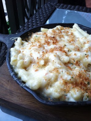 Did I mention that in addition to this overwhelming amount of food that we tacked on a serving of mac and cheese? Imagine my surprise and delight when it was served in a precious mini cast iron pan and was made with WHITE cheese! Yellow cheese just isn’t my thing. The macaroni was the bomb. Tasty, creamy, hot.