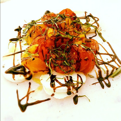 Above is their caprese salad- red and yellow heirloom tomatoes, fresh mozzarella, grated basil and a drizzle of balsamic glaze.