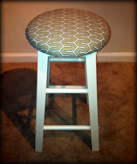 We had two of these that needed more of a purpose. So they got sanded, dry painted and were given an upholstered cushion top. What do you think? Now they fit in with our home and are much more comfortable! Since we already had the paint and stools, this project only cost about $8! Just get some thick foam and 1/2 yard of fabric for two.