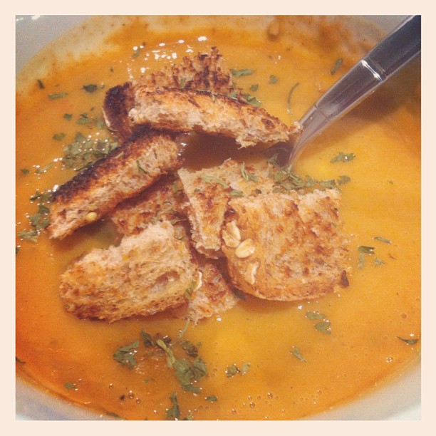 The wonderful weekend ended up homemade all-natural corn & pepper chowder with homemade {truth!} Ezekiel bread croutons.