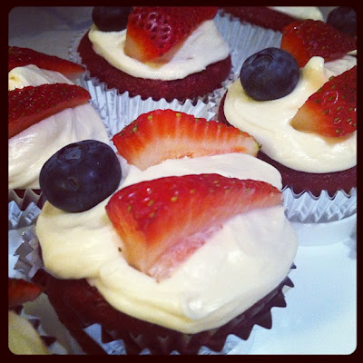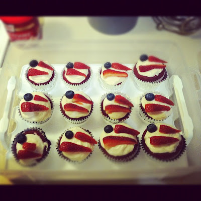 And YUMMY red velvet w cream cheese icing American Flag cupcakes!