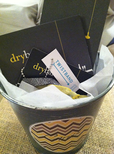For my bridesmaids, I filled their pail with a drybar gift certificate, drybar menu and matching Twistbands. They will surely have the most stylish hair on the block!