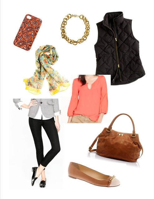 Cherise Coral iPhone Case | Classic Link Necklace | Excursion Quilted Vest | Drakes London Paisley Scarf | Collection Jacquard Keyhole Blouse | Minnie Pant | Brompton Hobo | Nora Cap Toe Chain Ballet Flat