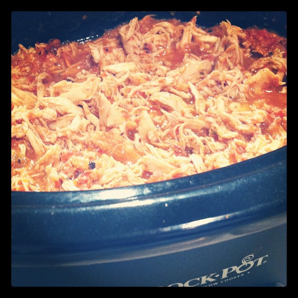 1. Put it allllll in the crock pot; make sure the chicken is covered with liquid
