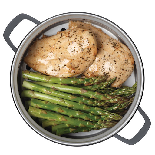 Steamed veggies! {chicken…no way; fish…sure thing!}