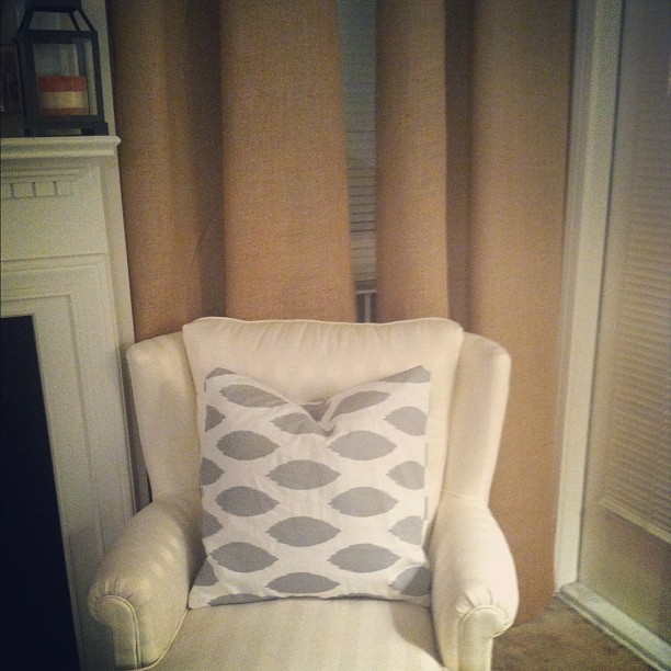 It took me about 3 months to actually sew these pillowcases {I had been previously using that stupid pinterest ‘no-sew’ method. sloppy central.}. We also added another panel of burlap ‘curtains’ to each window for a fuller look. Love it.