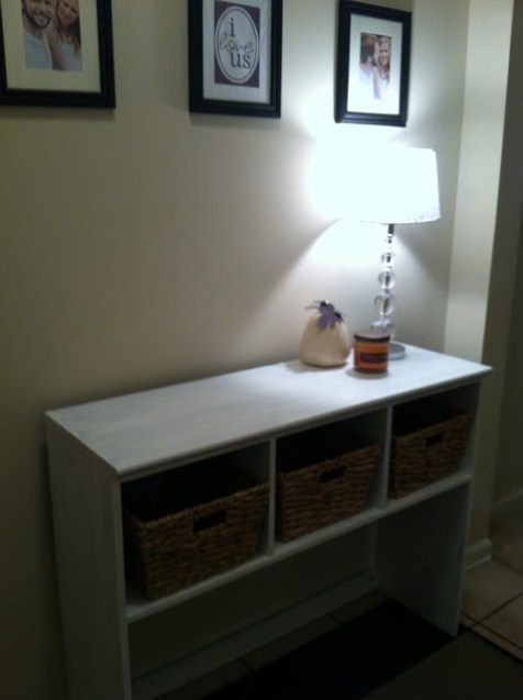 Passes the size test! Plus these cute baskets fit and our lonely {awesome!} lamp has found its home.