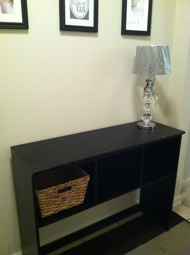 That new entry way table was actually birthed {what} as this black hutch. Then cast off who knows how many times until it ended up at the good ole Buckhead Goodwill for a whopping $14. Hutch smutch- this sucker is the perfect size for my hallway and has some built-in storage. Purchased!