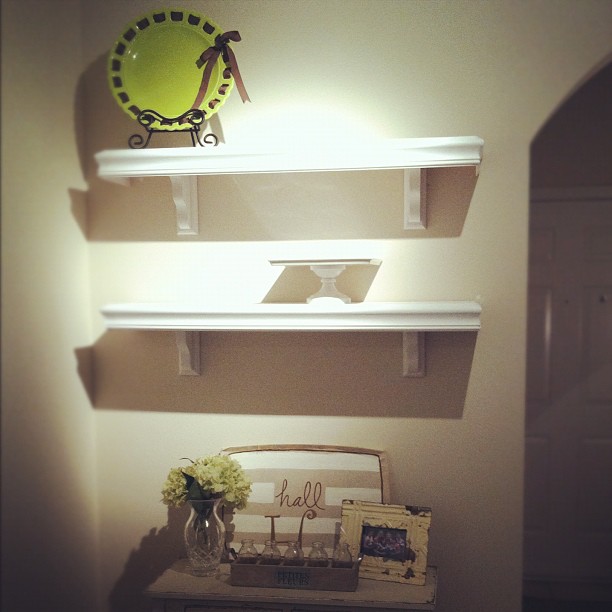 My birthday gift from Josh was these amazing custom built shelves! They took a lot of work and look amazing! Thank you Josh! {don’t worry- they will get decorated}