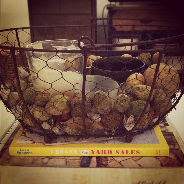 Mom gave me this basket that I had been hunting for and 3 awesome awesome coffee table books including the one in this picture- ‘I Brake for Yard Sales’