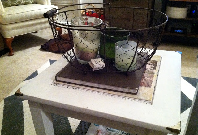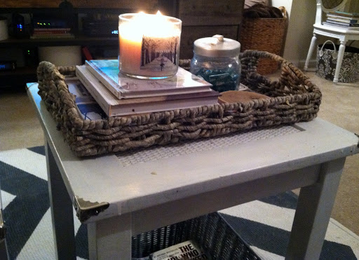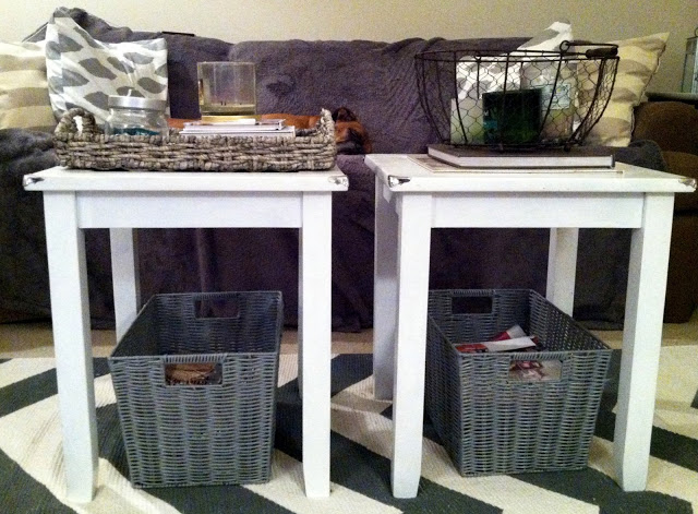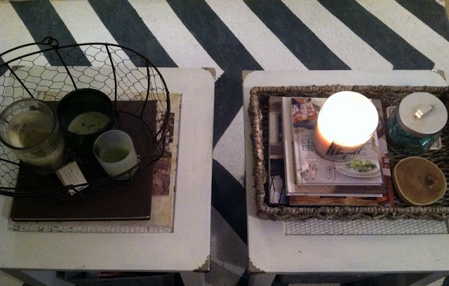 The little marriage tables got a quick quick quick makeover and have been re-purposed to be our coffee table!