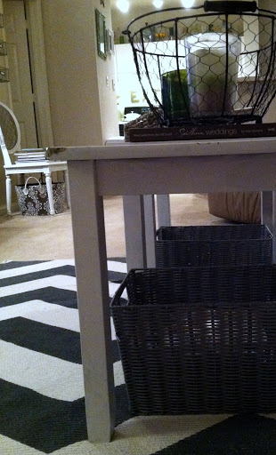 I love the fresh white paint on the tables- they pop on our rug