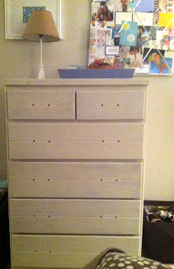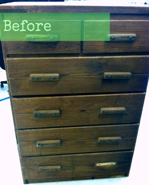 We lucked out! On our first trip to Goodwill we found this solid wood castaway. Great height, loved the amount of drawers and couldn’t beat the $30 price tag. Without a moment of hesitation, we loaded it up and took it home.