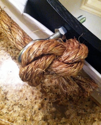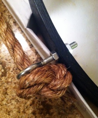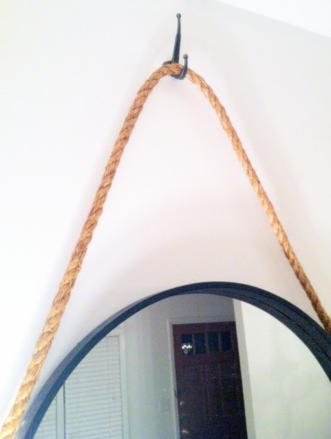 Using 5 feet of rope from Lowes we tied the ends securing the rope to the mirror using the hooks.