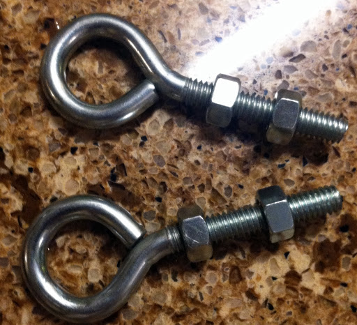 Two 5/16 x 3-1/4 Eye Hook Bolts, Lowes: $1.16