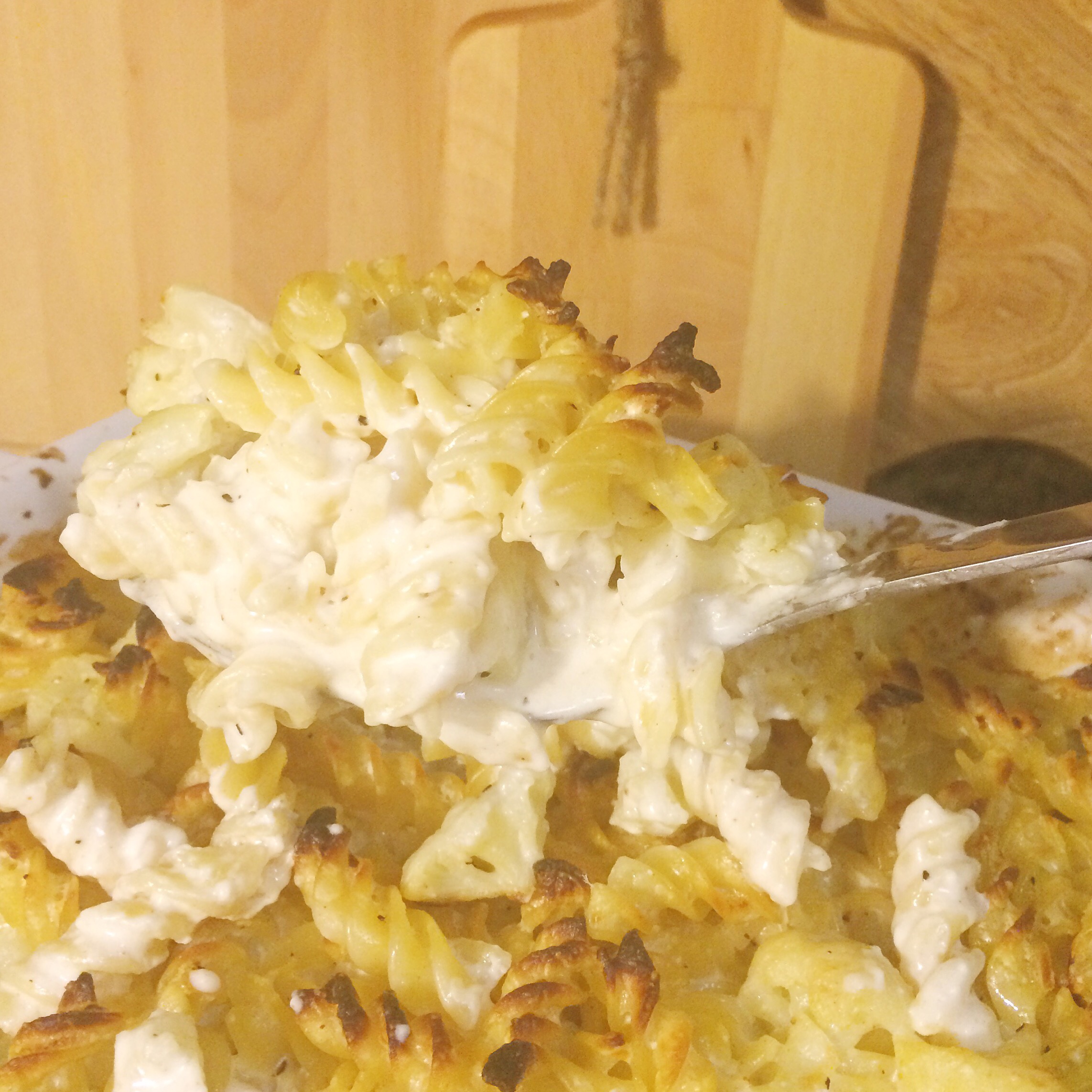 Pour the cheesy pasta over the cauliflower – stir to incorporate if you’d like – then bake for 20 minutes.